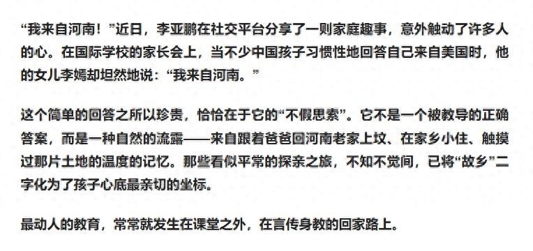 李亚鹏或许至今仍难相信,自己半生奔忙追逐的世俗成功,终究未能换来公众的普遍敬意;而女儿一句清澈如泉的“我来自河南”,却让他一夜之间收获了整个时代的温柔注视。